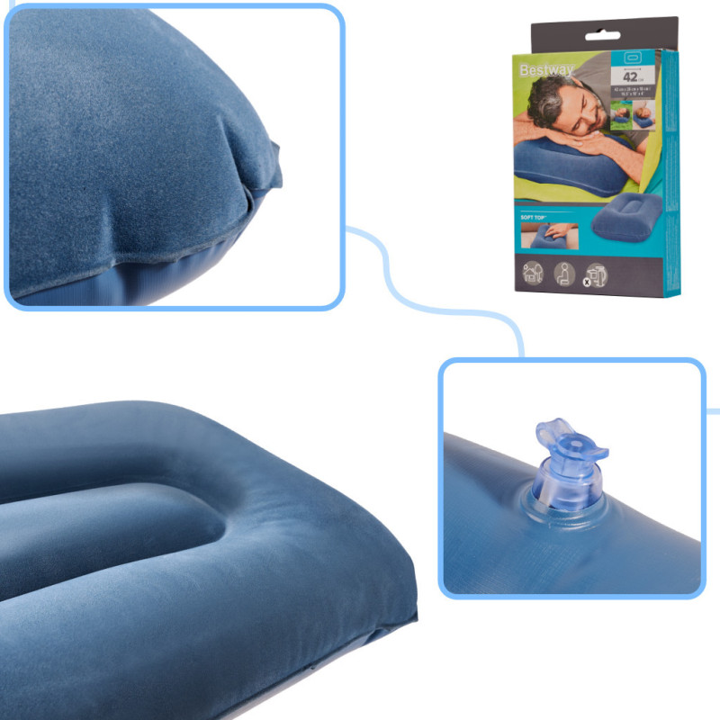 Bestway 67121 Nafukovací vankúš na kempovanie – modrý, velúrový