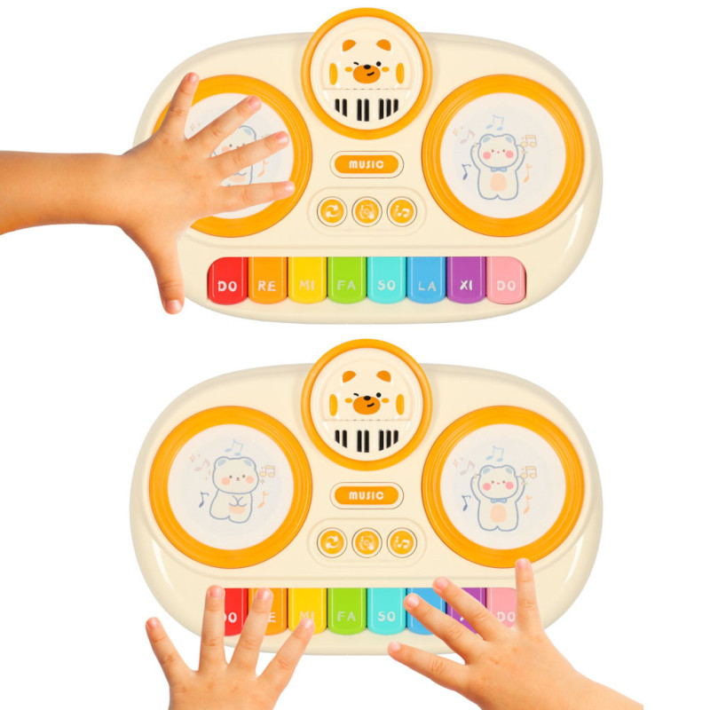 Veľké farebné klávesy sú ideálne pre malé prstíky, jemné podsvietenie motivuje k ďalšej hre. Pianínko učí súvislosť medzi pohybom a zvukom, čím podporuje koordináciu a manuálnu zručnosť. Okrem toho je vybavené okrúhlymi podložkami s jemným povrchom, ktoré po dotyku vydávajú bubnové zvuky – ideálne pre rytmické hranie.