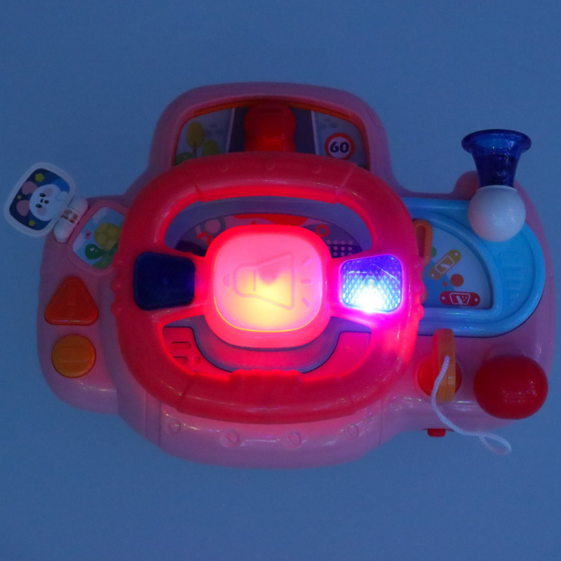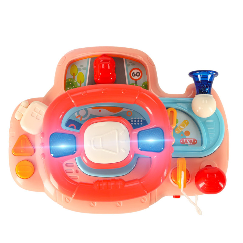 Dieťa môže pomocou volantu ovládať červené autíčko na palubnej doske a užívať si reálne zvuky štartovania motora, smeroviek či trúby. Hračka obsahuje 6 piesní a 6 melódií, ktoré robia hru ešte pestrejšou. Svietiace smerovky pridávajú na realistickosti a udržia pozornosť dieťaťa.