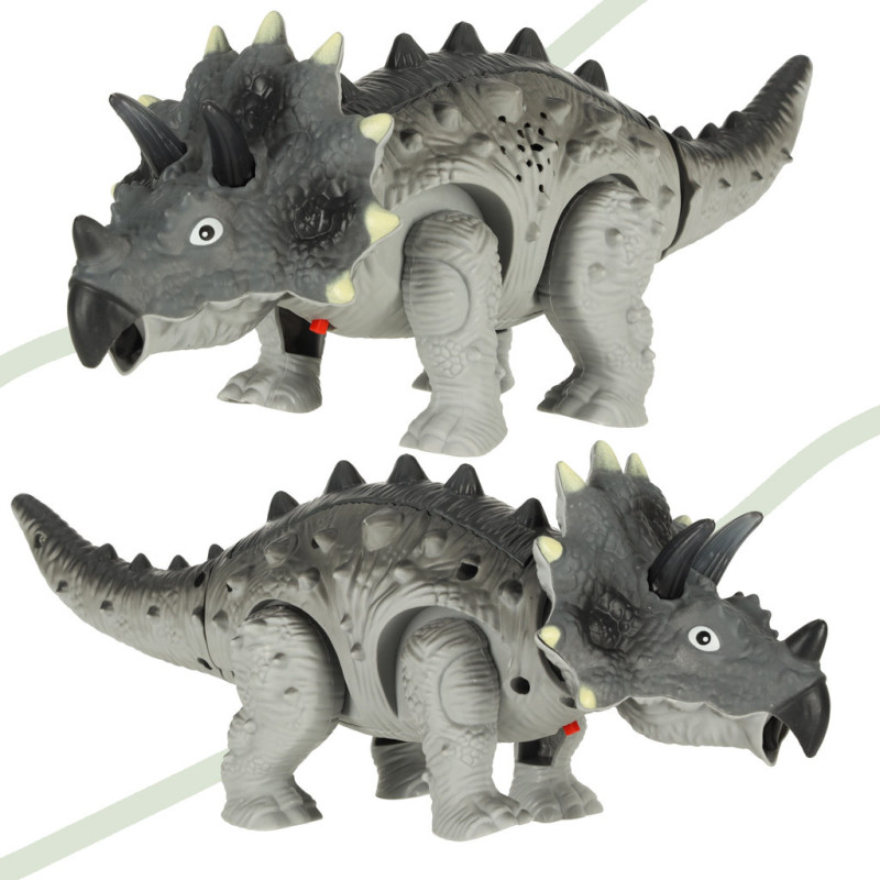 Interaktívny dinosaurus Triceratops je perfektnou hračkou pre deti fascinované svetom prehistorických zvierat. Tento pohyblivý dinosaurus chodí, svieti a vydáva realistické zvuky, čo z neho robí výnimočný darček pre každého malého paleontológa.