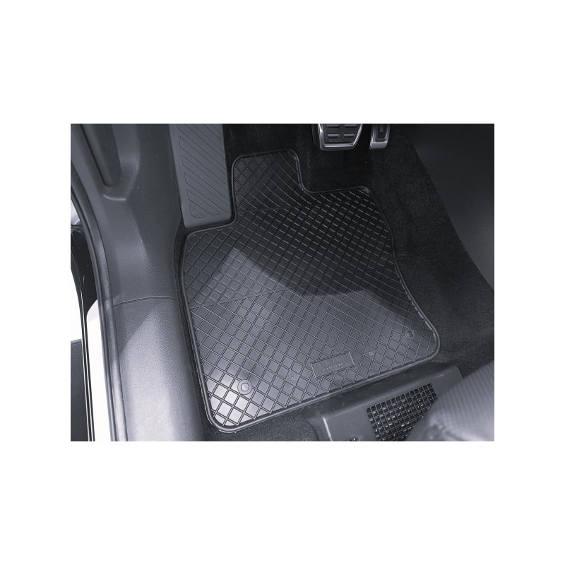 Gumené rohože na mieru pre design ŠKODA Kodiaq (2017->). Rohože sú vyrobené presne na mieru interiéru daného vozidla. Lacnejšia náhrada originálnych rohoží.