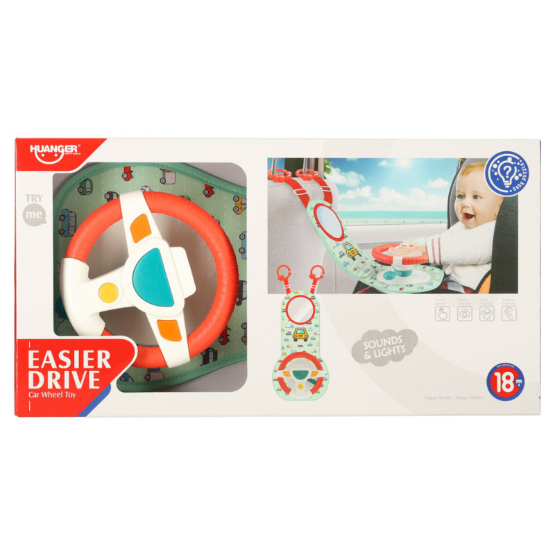 Tlačidlá na volante vydávajú zvuky a svietia, čím spestrujú hru batoľaťa.