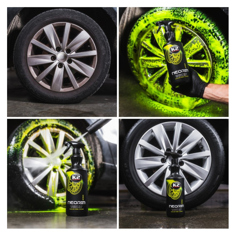 K2 NEORIM PRO - zelená sila pre dokonalé čistenie diskov K2 NEORIM PRO je profesionálny čistič diskov, ktorý nemilosrdne bojuje so špinou a brzdovým prachom. Jeho inovatívne zloženie bez obsahu kyselín zaručuje maximálnu účinnosť bez poškodenia povrchu. Obohatený o inhibítory korózie, spoľahlivo čistí, chráni a stará sa o všetky typy ráfikov, pneumatiky aj podbehy kolies. Jeho výrazná neónovo zelená farba okamžite odhalí nečistoty, zatiaľ čo hustá pena priľne k povrchu a umožní hĺbkové čistenie. K2 NEORIM PRO nielen že účinne čistí, ale aj spríjemňuje prácu sviežou vôňou, ktorá vás sprevádza počas aplikácie. Ideálny pre profesionálov aj nadšencov, ktorí hľadajú spoľahlivé riešenie pre dokonalý vzhľad kolies.