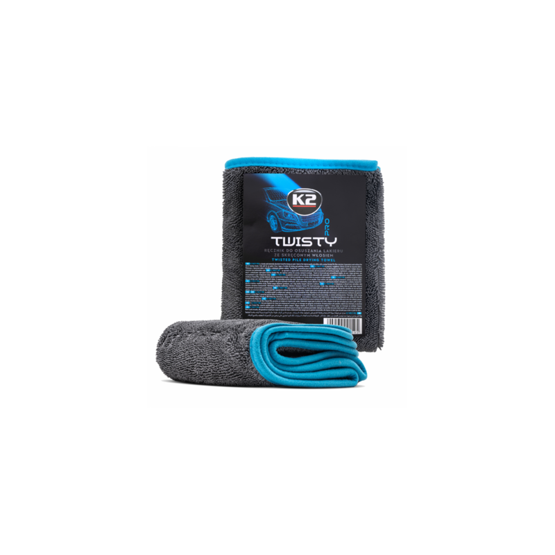K2 TWISTY PRO - univerzálne mikrovlákno na sušenie a leštenie auta K2 TWISTY PRO je praktická a efektívna utierka z mikrovlákna, určená na rýchle sušenie a precízne leštenie vozidla. Jej obojstranné vyhotovenie umožňuje všestranné použitie – skrútené vlákna na jednej strane slúžia na efektívne vysušenie karosérie, zatiaľ čo hladká strana je ideálna na leštenie skiel a okien bez šmúh. Mikrovlákno K2 TWISTY PRO v rozmere 40x60 cm a s hustotou 600 g/m² poteší každého, kto si potrpí na dokonale čisté auto. Vďaka špičkovej kvalite materiálu a modernej technológii "Twisted Pile" perfektne pohlcuje vodu, jemne kĺže po povrchu a minimalizuje riziko poškriabania laku. Výhody K2 TWISTY PRO oceníte najmä pri sušení po návšteve bezdotykových autoumyvární – rýchlo a bez námahy odstránite zvyšky vody, čím predídete vzniku vápencových škvŕn. Ak potrebujete utrieť väčšie plochy, odporúčame vám väčší uterák K2 TWISTON PRO s rozmerom 60x90 cm.