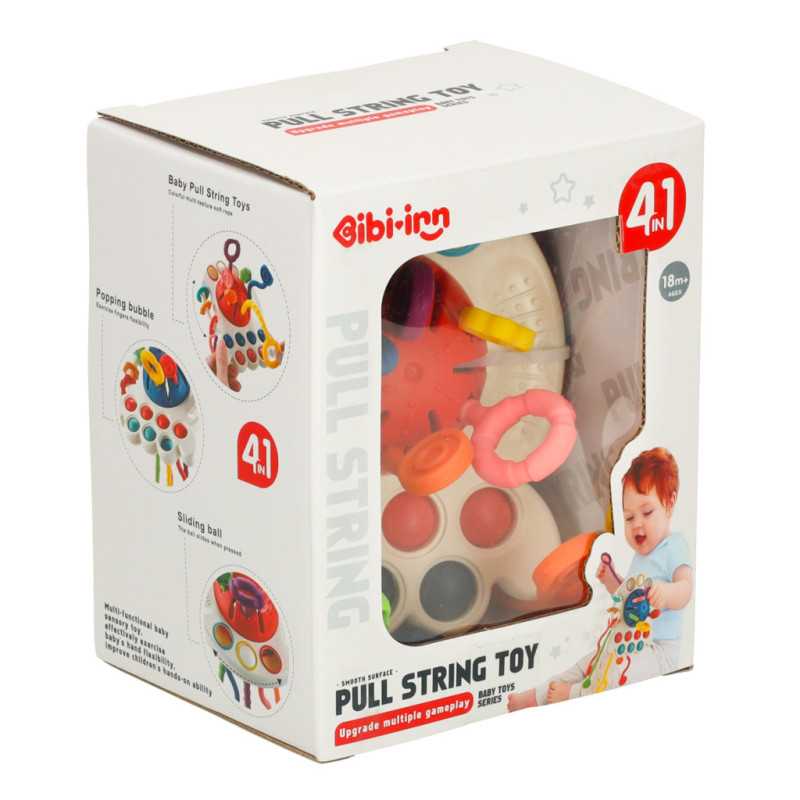 Táto senzorická hračka je ideálna pre vaše dieťatko. Šesť mäkkých, farebných šnúrok s rôznymi textúrami je ideálnou hračkou pre malé rúčky. Ťahanie, stláčanie, hryzenie - každý moment je novým zmyslovým zážitkom. Ďalšie prvky, ako je posuvný puk a silikónové gombíky, rozvíjajú manuálne zručnosti a koordináciu oko-ruka. Hryzátko je dokonalým spôsobom, ako zabaviť vaše dieťa a zároveň upokojiť boľavé ďasná počas prerezávania zúbkov. Sledujte, ako vaše dieťa zvedavo skúma rôzne textúry a farby hryzátka!