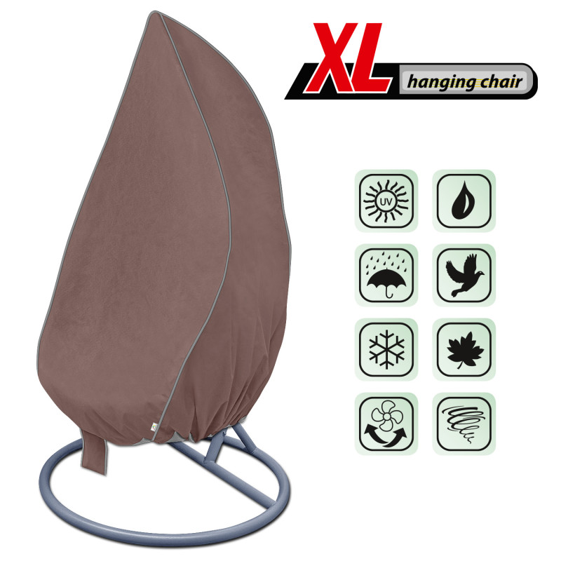 Ochranný kryt na závesné kreslo XL zabezpečuje spoľahlivú ochranu pred dažďom, UV žiarením a prachom. Vyrobený zo 210 DEN Oxford polyesteru, vodoodpudivý, s vnútornou UV vrstvou 50+ – ideálny na celoročné použitie.