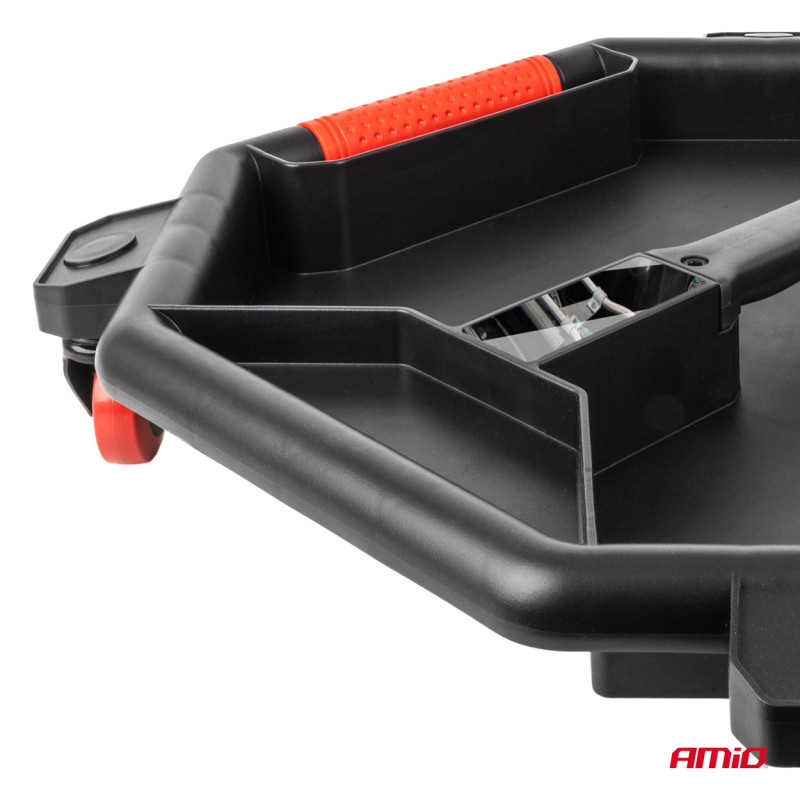 Organizér náradia na kolieskach je praktický a mobilný pomocník pre každého majstra, mechanika či domácich kutilov. Jeho robustná konštrukcia z odolného plastu zabraňuje vypadávaniu náradia a umožňuje efektívne usporiadanie náradia, ako sú kľúče, skrutkovače a ďalšie príslušenstvo. Vďaka odolným kolieskam je ľahko prenosný a ideálny pre prácu pod vozidlom, v autodielni alebo garáži.