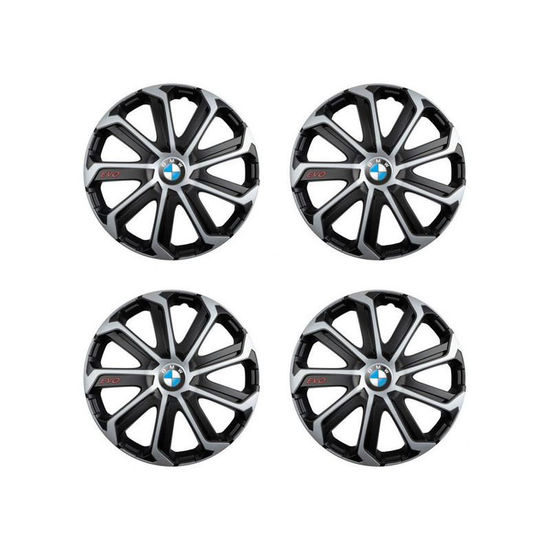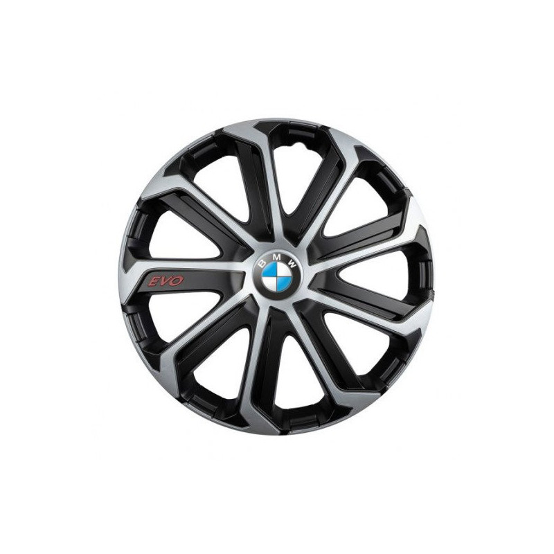 Puklice 15 Evo black&silver pre BMW na ocelové disky. Pre kolesá o veľkosti R15 so živicovými samolepkami BMW.Príjemca :