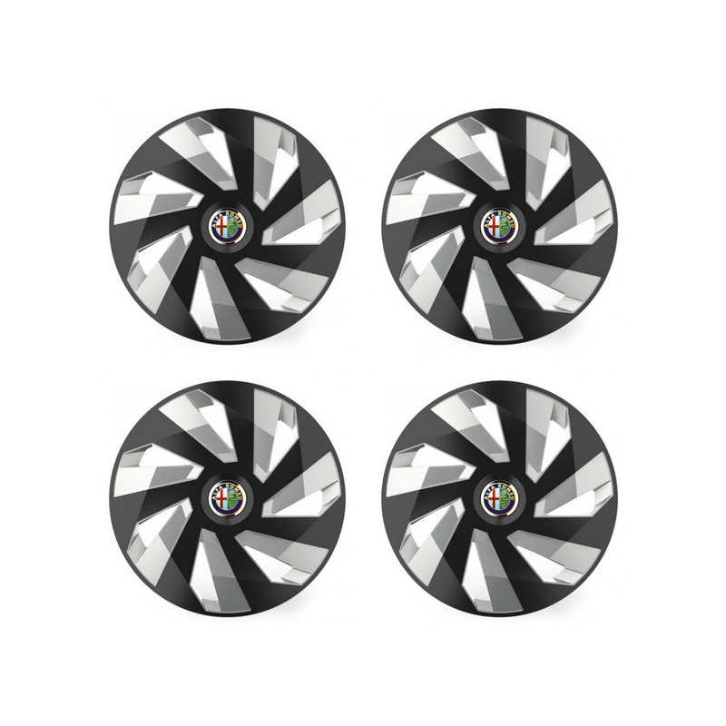 Puklice 16 Vector RC black and silver pre Alfa Romeo na ocelové disky. Pre kolesá o veľkosti R16 so živicovými samolepkami Alfa Romeo.Príjemca :