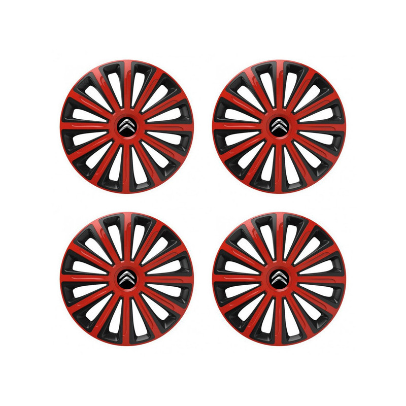 Puklice 16 TREND red and black pre Citroen na ocelové disky. Pre kolesá o veľkosti R16 so živicovými samolepkami Citroen.Príjemca :