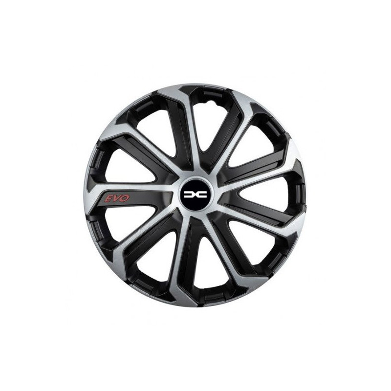 Puklice 15 Evo black&silver pre Dacia (nové logo) na ocelové disky. Pre kolesá o veľkosti R15 so živicovými samolepkami Dacia (nové logo).Príjemca :