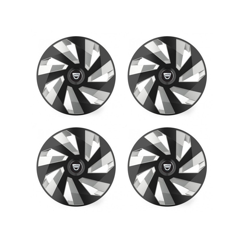 Puklice 15 Vector RC black and silver pre Dacia (staršie logo) na ocelové disky. Pre kolesá o veľkosti R15 so živicovými samolepkami Dacia (staršie logo).Príjemca :