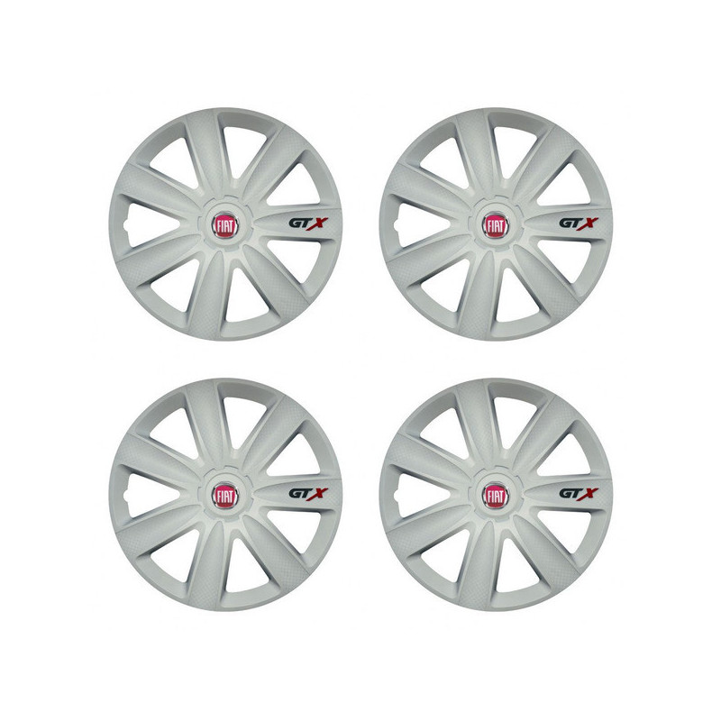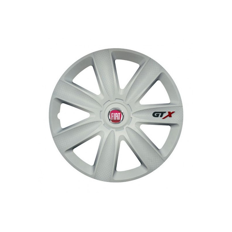 Puklice 16 GTX carbon white pre Fiat (červené) na ocelové disky. Pre kolesá o veľkosti R16 so živicovými samolepkami Fiat (červené).Príjemca :