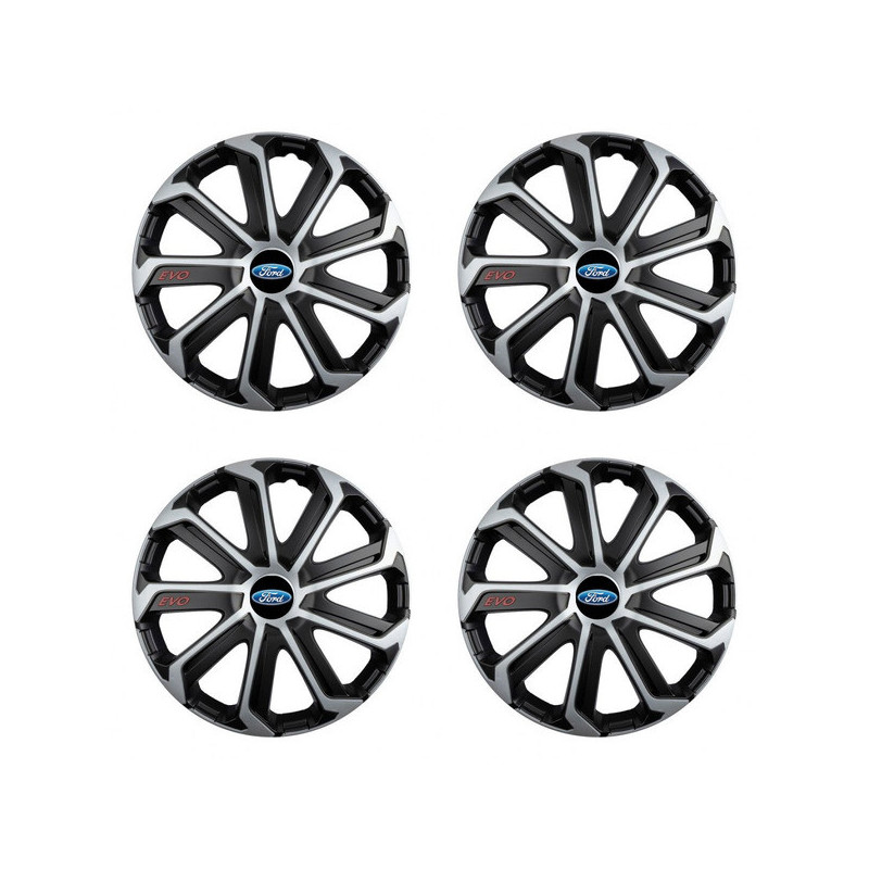 Puklice 14 Evo black&silver pre Ford na ocelové disky. Pre kolesá o veľkosti R14 so živicovými samolepkami Ford.Príjemca :