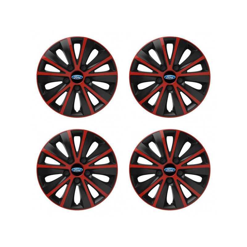 Puklice 15 RAPIDE red and black pre Ford na ocelové disky. Pre kolesá o veľkosti R15 so živicovými samolepkami Ford.Príjemca :