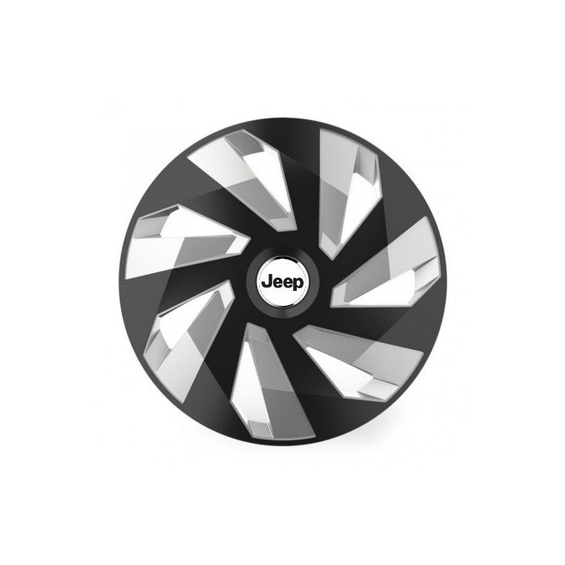 Puklice 15 Vector RC black and silver pre Jeep na ocelové disky. Pre kolesá o veľkosti R15 so živicovými samolepkami Jeep.Príjemca :
