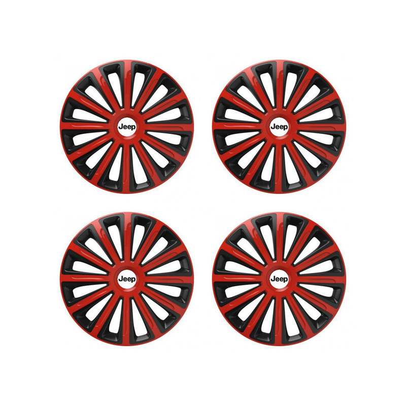 Puklice 16 TREND red and black pre Jeep na ocelové disky. Pre kolesá o veľkosti R16 so živicovými samolepkami Jeep.Príjemca :