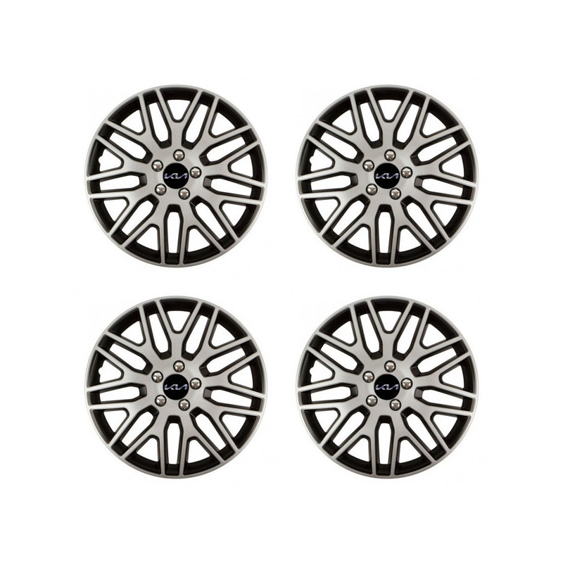 Puklice 14 Dakar NC silver and black pre Kia (nové logo) na ocelové disky. Pre kolesá o veľkosti R14 so živicovými samolepkami Kia (nové logo).Príjemca :