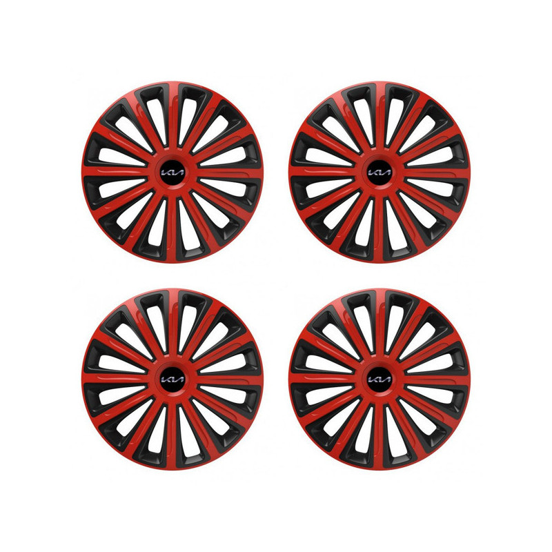 Puklice 15 TREND red and black pre Kia (nové logo) na ocelové disky. Pre kolesá o veľkosti R15 so živicovými samolepkami Kia (nové logo).Príjemca :