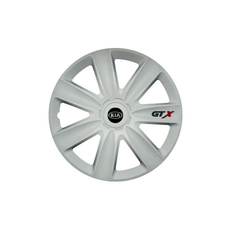 Puklice 14 GTX carbon white pre Kia (staršie logo) na ocelové disky. Pre kolesá o veľkosti R14 so živicovými samolepkami Kia (staršie logo).Príjemca :