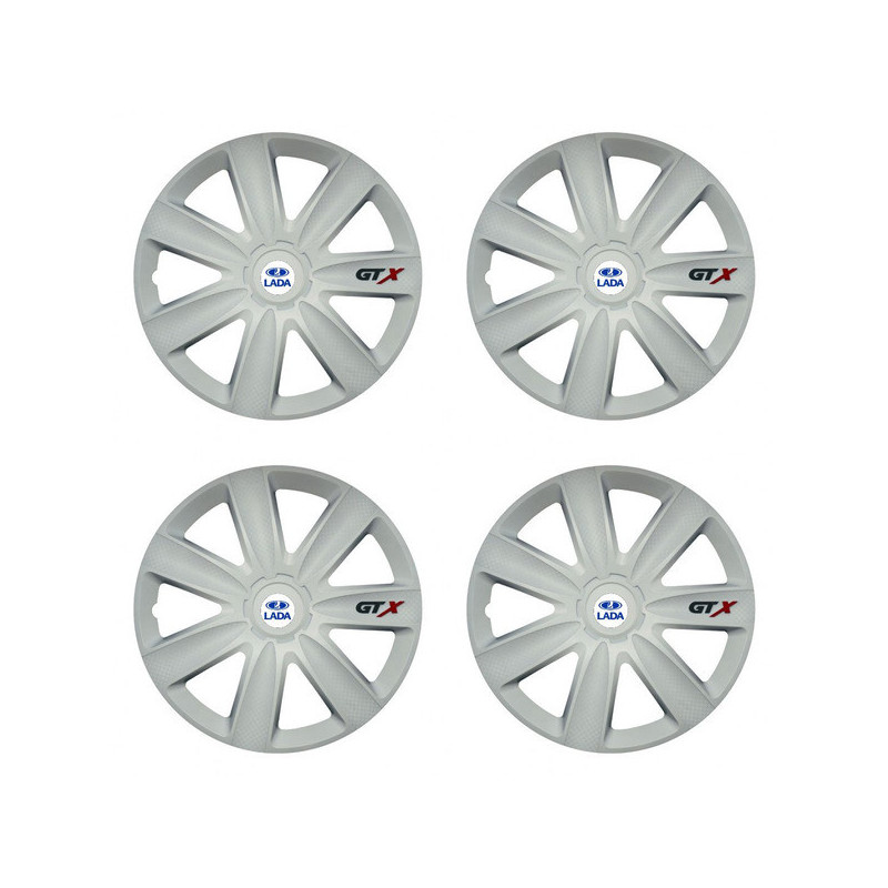 Puklice 14 GTX carbon white pre Lada na ocelové disky. Pre kolesá o veľkosti R14 so živicovými samolepkami Lada.Príjemca :