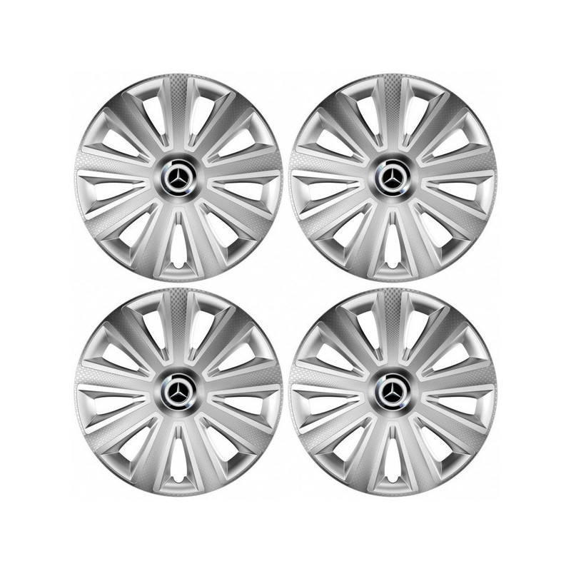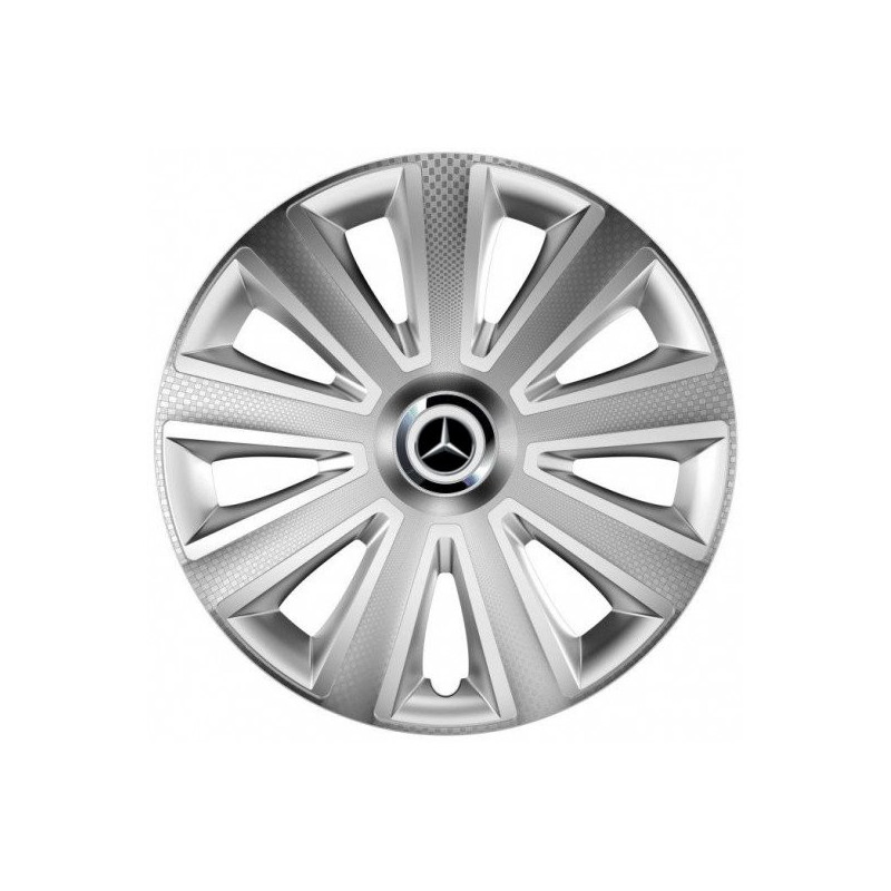 Puklice 14 Aviator carbon RC silver pre Mercedes na ocelové disky. Pre kolesá o veľkosti R14 so živicovými samolepkami Mercedes.Príjemca :