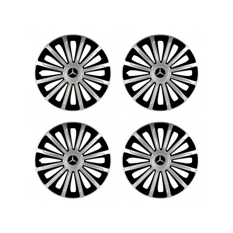 Puklice 15 TREND silver and black pre Mercedes na ocelové disky. Pre kolesá o veľkosti R15 so živicovými samolepkami Mercedes.Príjemca :