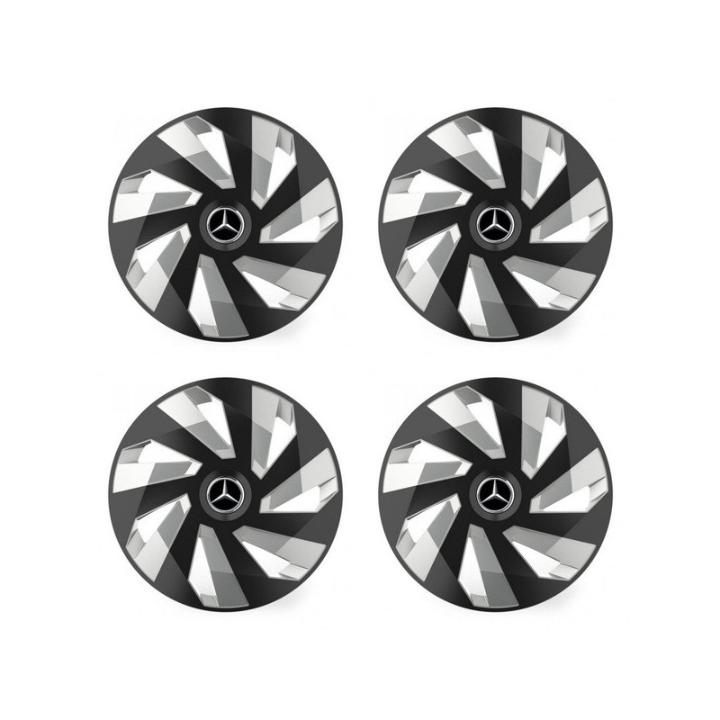Puklice 16 Vector RC black and silver pre Mercedes na ocelové disky. Pre kolesá o veľkosti R16 so živicovými samolepkami Mercedes.Príjemca :