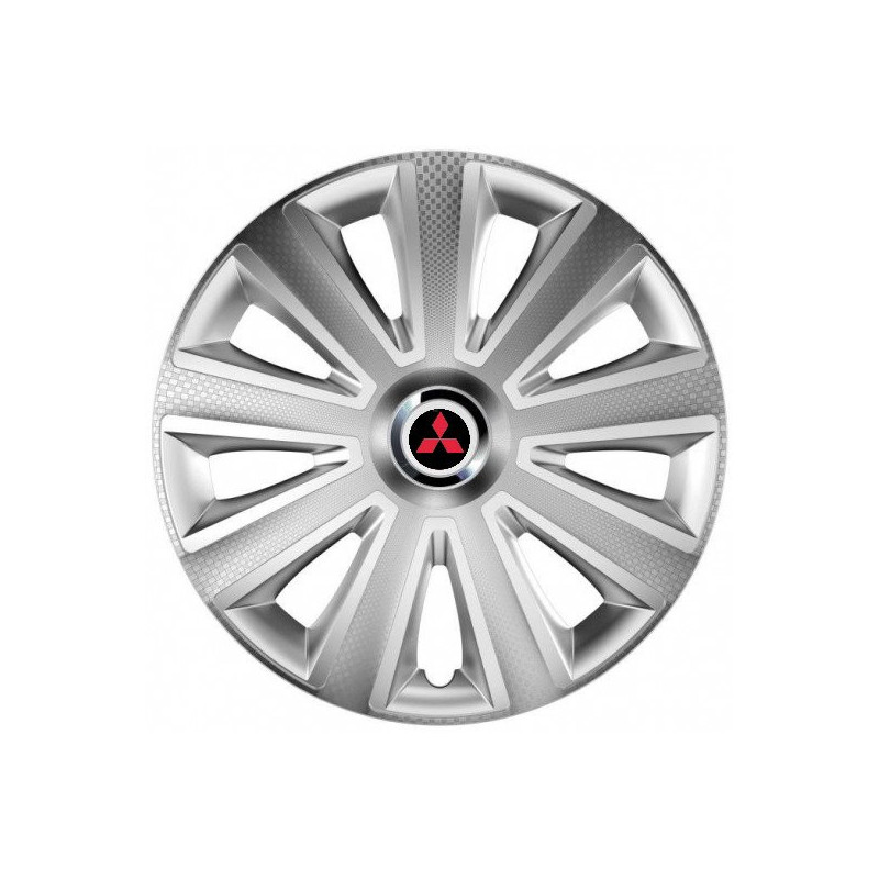 Puklice 14 Aviator carbon RC silver pre Mitsubishi (červené) na ocelové disky. Pre kolesá o veľkosti R14 so živicovými samolepkami Mitsubishi (červené).Príjemca :