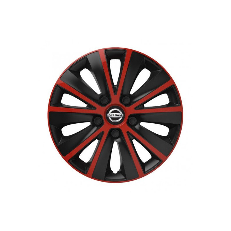Puklice 14 RAPIDE red and black pre Nissan na ocelové disky. Pre kolesá o veľkosti R14 so živicovými samolepkami Nissan.Príjemca :