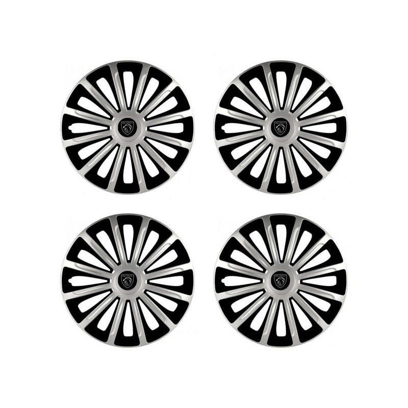 Puklice 15 TREND silver and black pre Peugeot (nové logo) na ocelové disky. Pre kolesá o veľkosti R15 so živicovými samolepkami Peugeot (nové logo).Príjemca :
