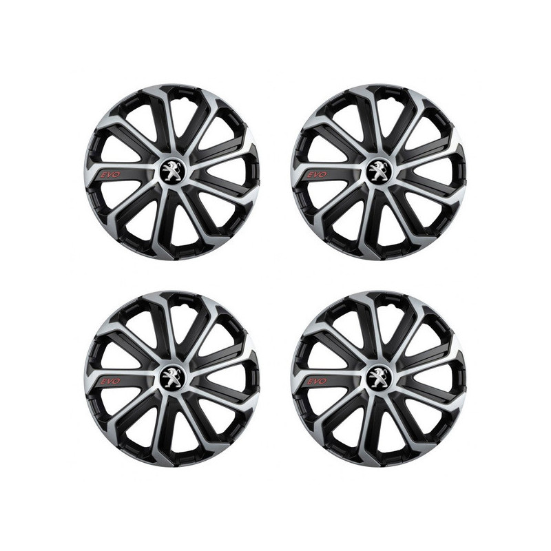 Puklice 16 Evo black&silver pre Peugeot (staršie logo) na ocelové disky. Pre kolesá o veľkosti R16 so živicovými samolepkami Peugeot (staršie logo).Príjemca :