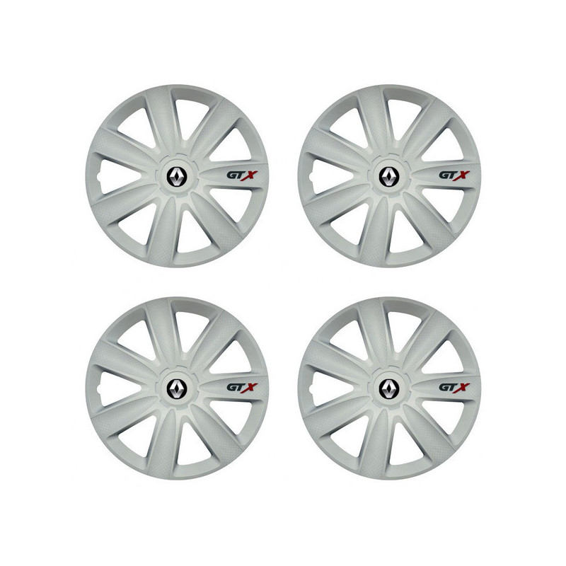 Puklice 14 GTX carbon white pre Renault (staršie logo) na ocelové disky. Pre kolesá o veľkosti R14 so živicovými samolepkami Renault (staršie logo).Príjemca :