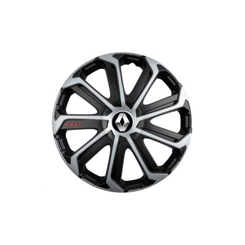 Puklice 15 Evo black&silver pre Renault (staršie logo) na ocelové disky. Pre kolesá o veľkosti R15 so živicovými samolepkami Renault (staršie logo).Príjemca :