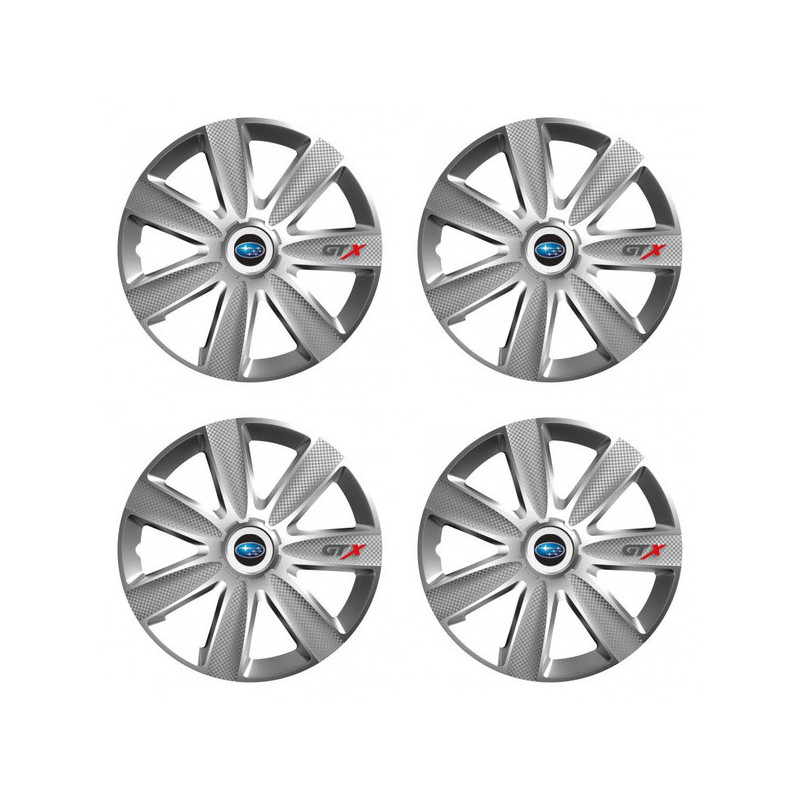 Puklice 16 GTX CARBON silver pre Subaru na ocelové disky. Pre kolesá o veľkosti R16 so živicovými samolepkami Subaru.Príjemca :