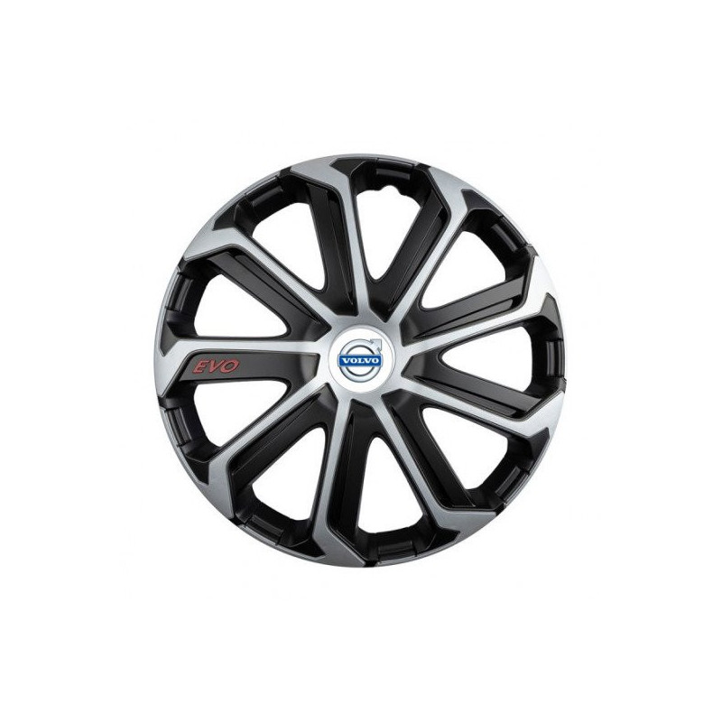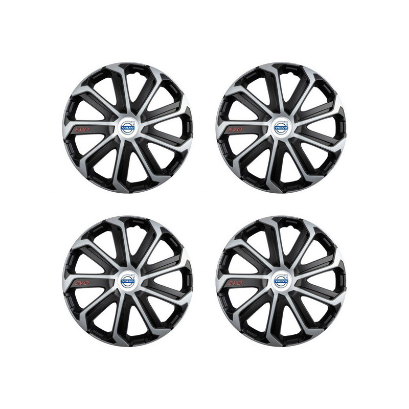 Puklice 14 Evo black&silver pre Volvo (biele) na ocelové disky. Pre kolesá o veľkosti R14 so živicovými samolepkami Volvo (biele).Príjemca :