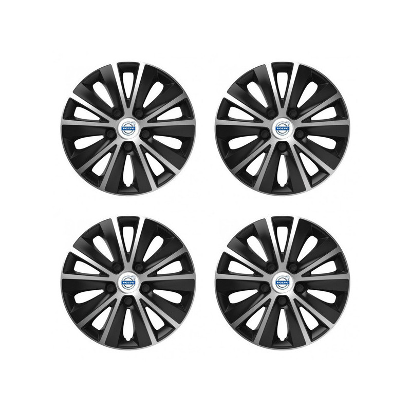 Puklice 14 RAPIDE silver and black pre Volvo (biele) na ocelové disky. Pre kolesá o veľkosti R14 so živicovými samolepkami Volvo (biele).Príjemca :