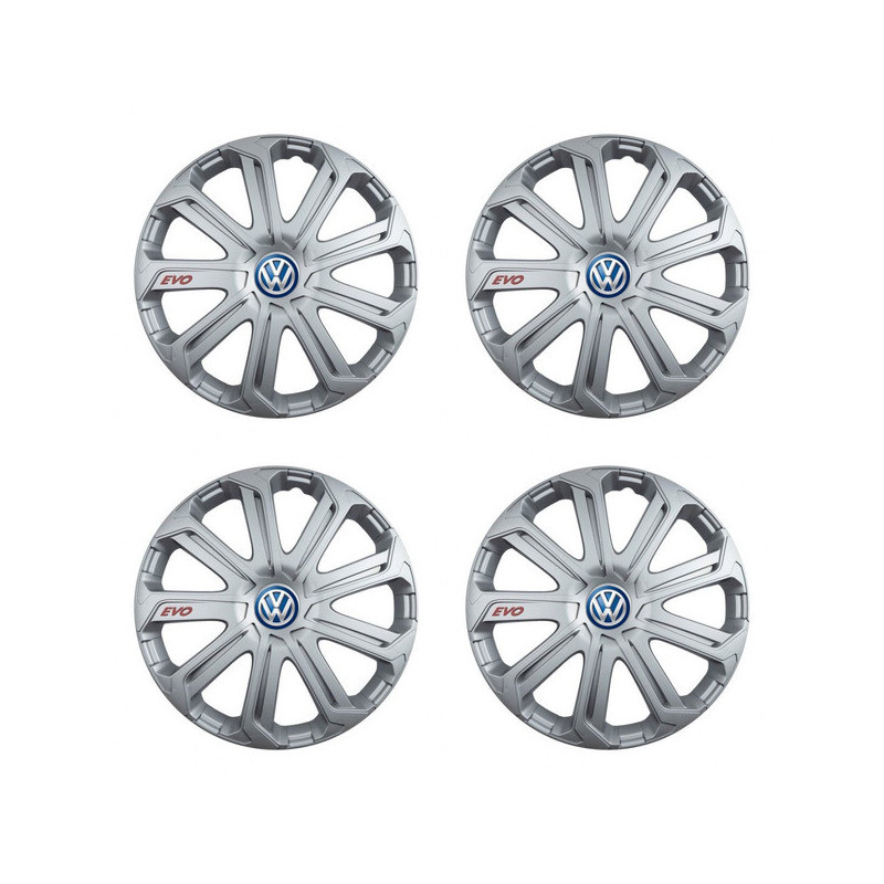 Puklice 14 Evo silver pre VW (modré) na ocelové disky. Pre kolesá o veľkosti R14 so živicovými samolepkami VW (modré).Príjemca :