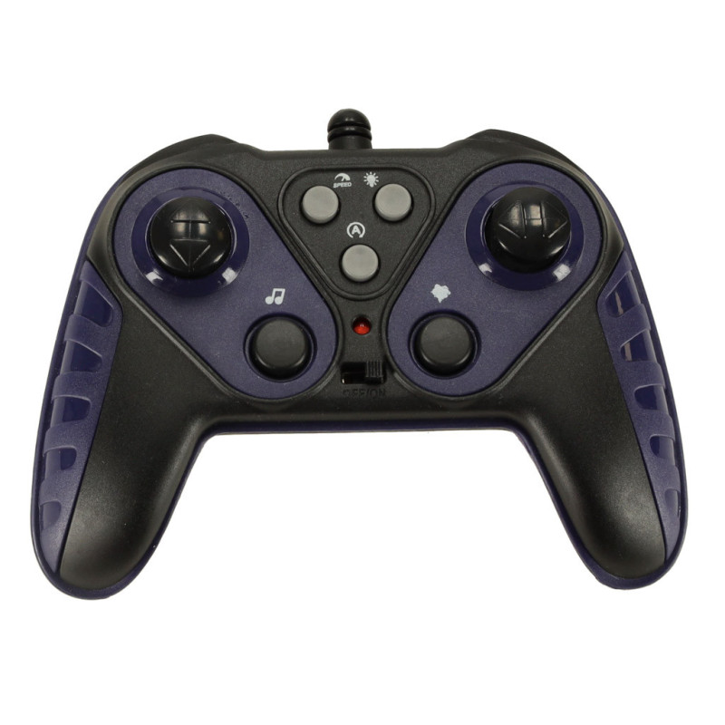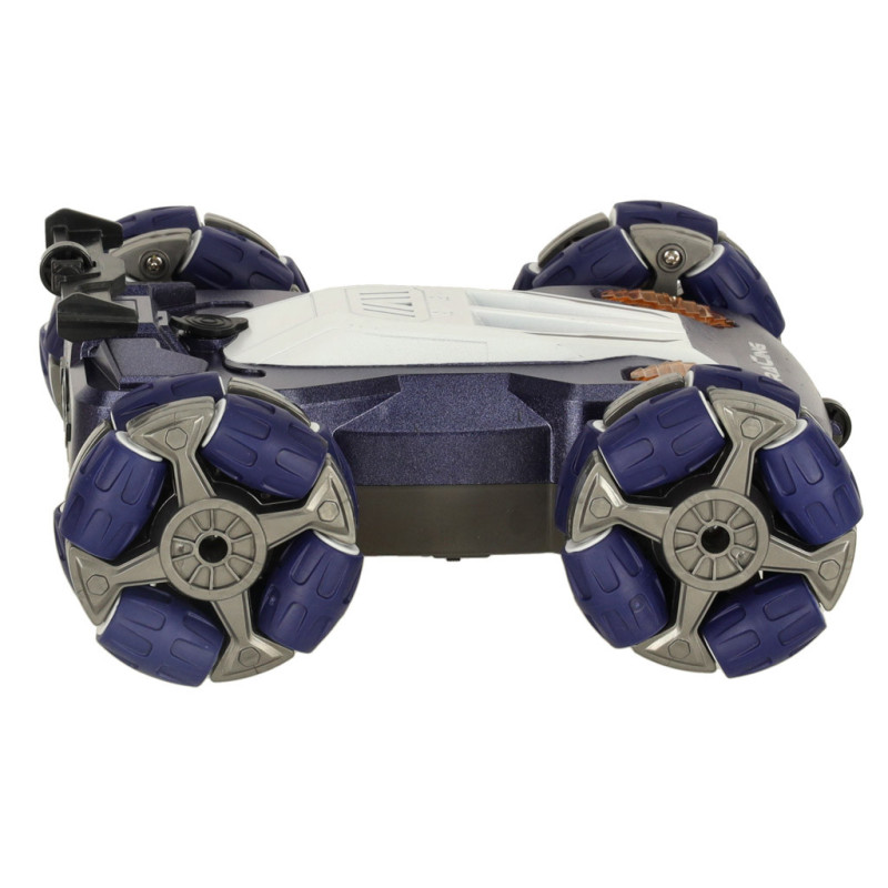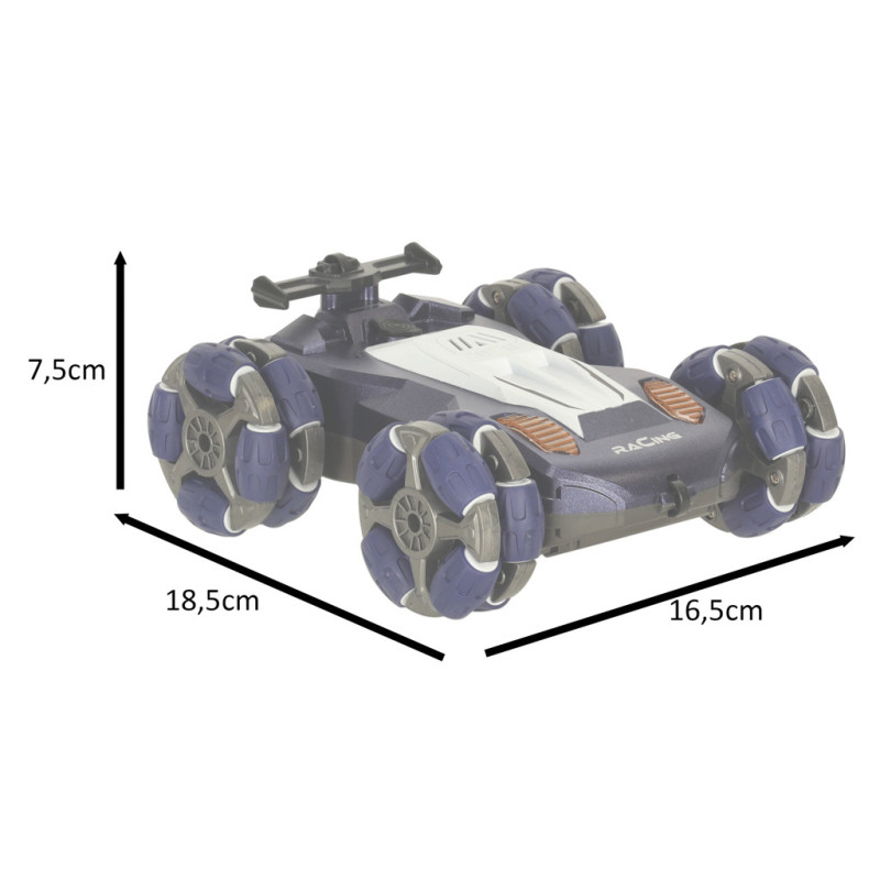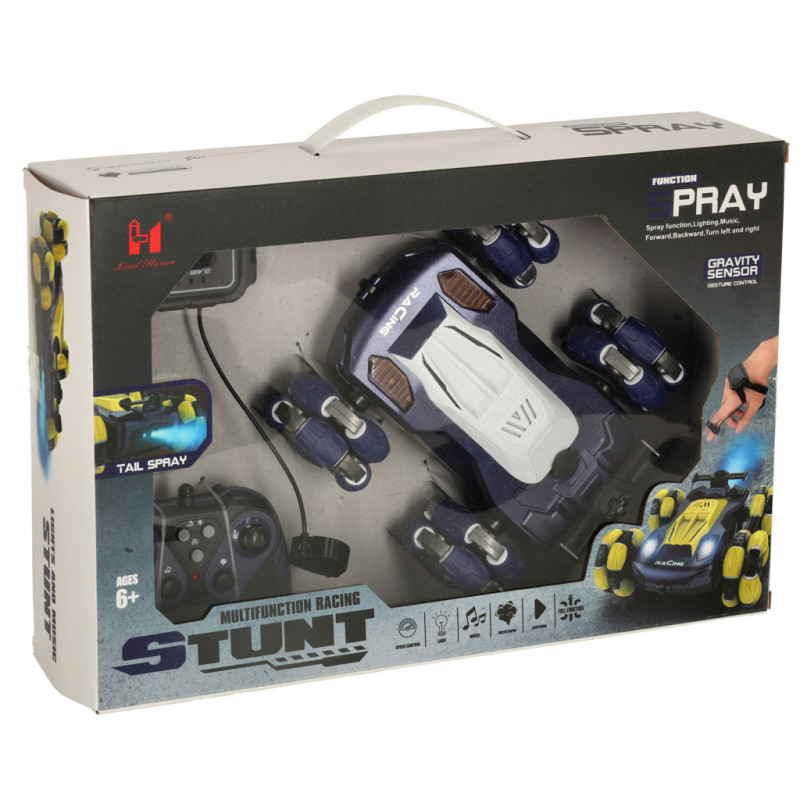 Malé, modré a zábavné RC auto je ideálnou hračkou pre každého malého nadšenca diaľkovo ovládaných modelov. Okrem originálneho dizajnu zaujme aj dvojitým systémom ovládania – klasickým ovládačom pre presné manévrovanie a inovatívnym ovládačom na ruku, ktorý umožňuje ovládanie pomocou gest. Svetelné efekty a dym vychádzajúci z výfuku dodávajú hre ešte väčší realizmus a zábavu. Auto sa pohybuje všetkými smermi a zvládne tak každú výzvu na trati. Napája sa pomocou dobíjateľného akumulátora, ovládače sú na batérie (nie sú súčasťou balenia).