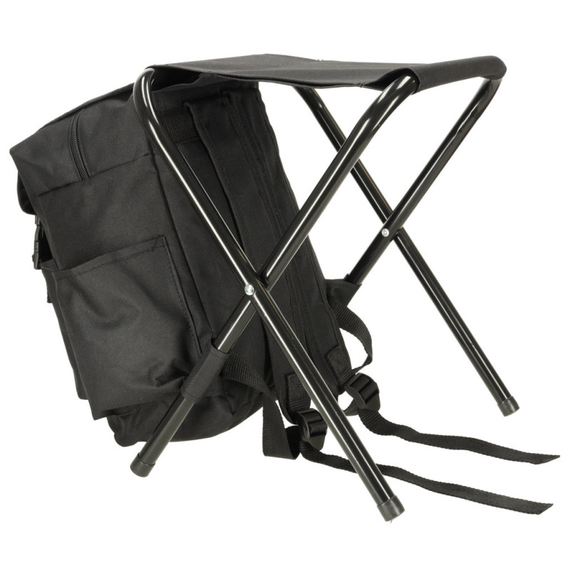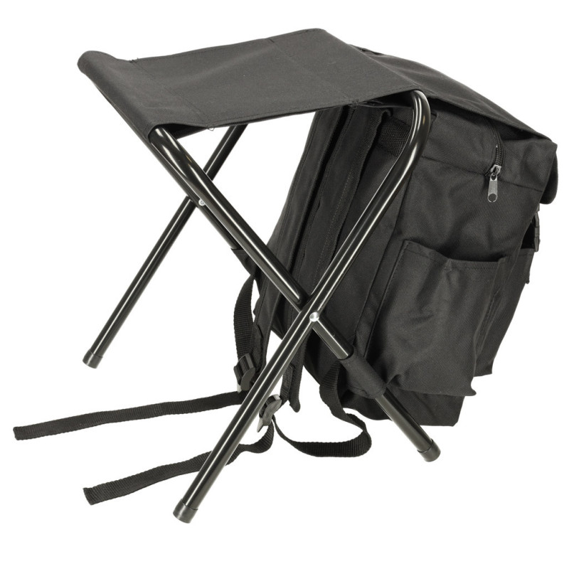 Turistická skladacia stolička s batohom, praktický pomocník- čierna.
