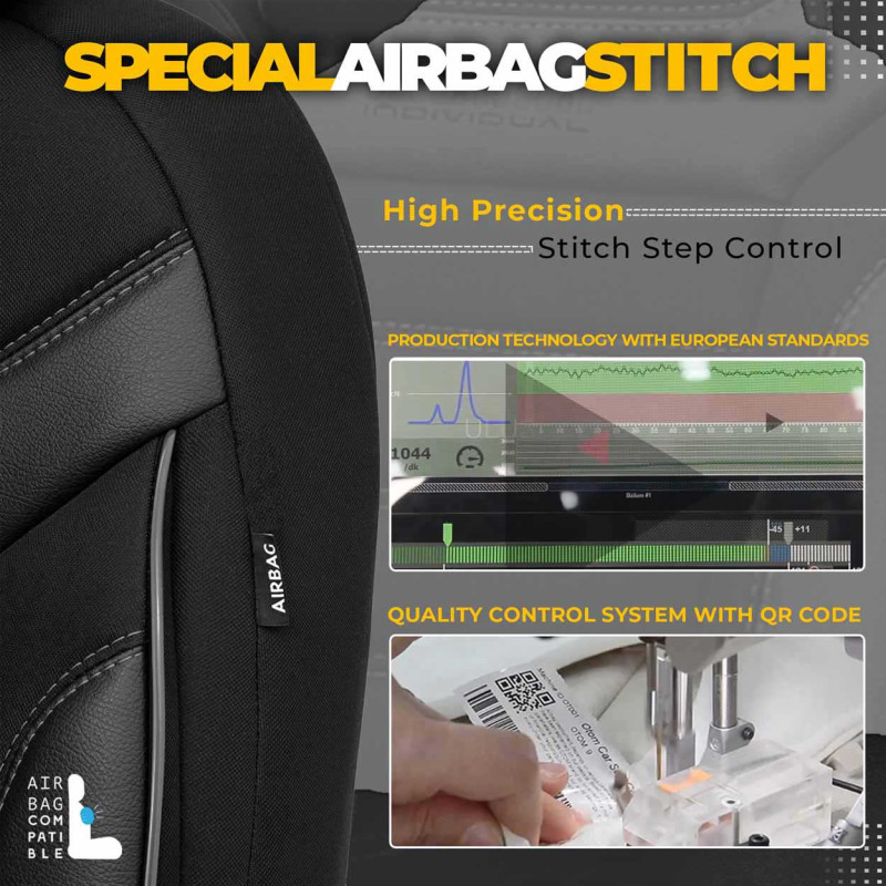 Sada autopoťahov OTOM INDIVIDUAL DESIGN 202 ponúka spoľahlivú ochranu sedadiel a zároveň vďaka modernému dizajnu dodá interiéru vozidla elegantný vzhľad. Certifikovaný AIRBAGový šev zaručuje bezpečné použitie aj v autách s bočnými airbagmi.