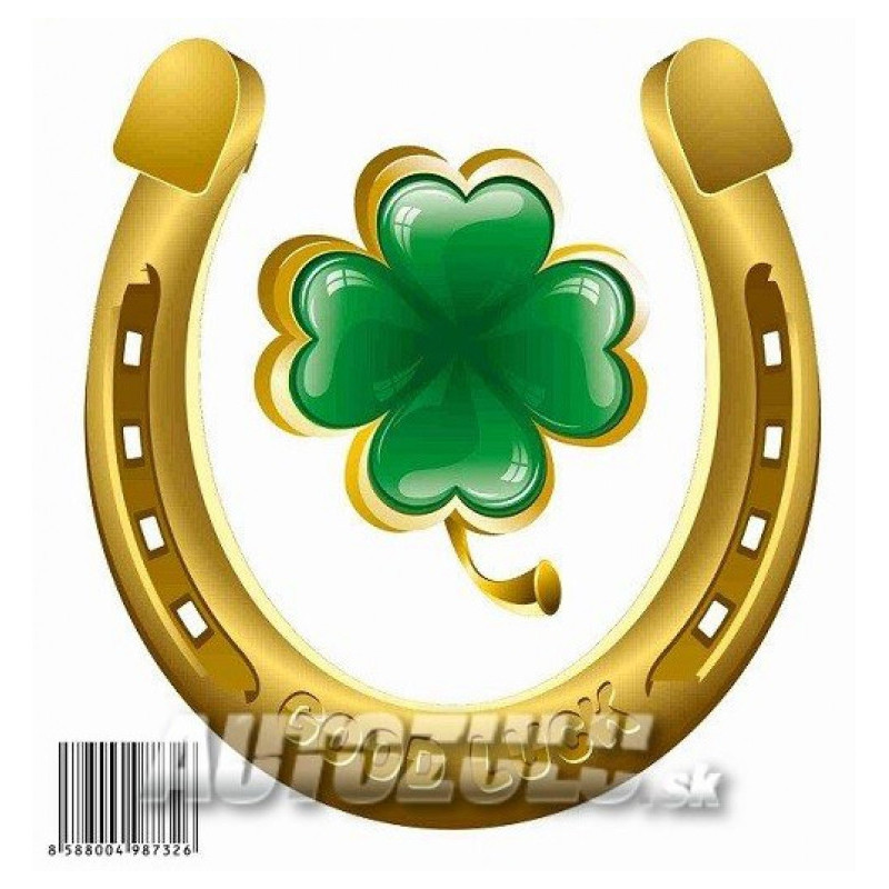 Krásna farebná tlačená samolepka podkova + štvorlístok. Tlačená na bielu fóliu.