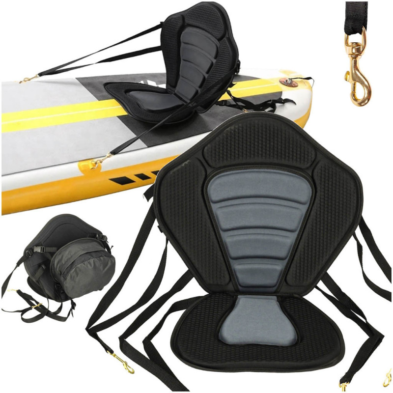 Vodácke sedadlo na kajak alebo SUP zvyšuje pohodlie počas pádlovania a umožňuje dlhšie a stabilnejšie plavby. Je potiahnuté protišmykovým materiálom, ktorý zvyšuje bezpečnosť aj komfort pri sedení. Sedadlo sa ľahko upevňuje pomocou popruhov s karabínkami na koncoch, ktoré sa jednoducho prichytia k doske SUP.