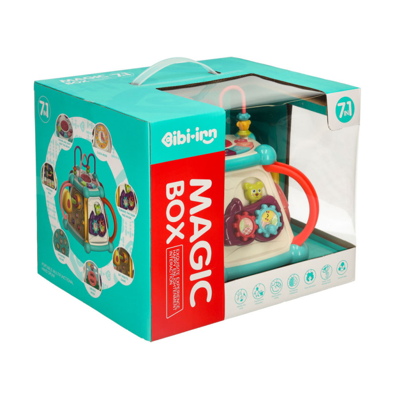Každá strana kocky ukrýva nový prvok, ktorý treba objaviť. Rôzne textúry, farby, tvary a spôsoby interakcie s prvkami stimulujú zmysly dieťaťa a rozvíjajú jeho zvedavosť o svete. Hračka tiež poskytuje vynikajúcu príležitosť na učenie sa farieb a čísel.