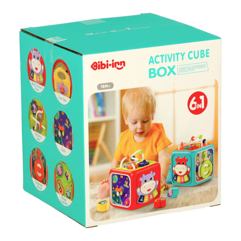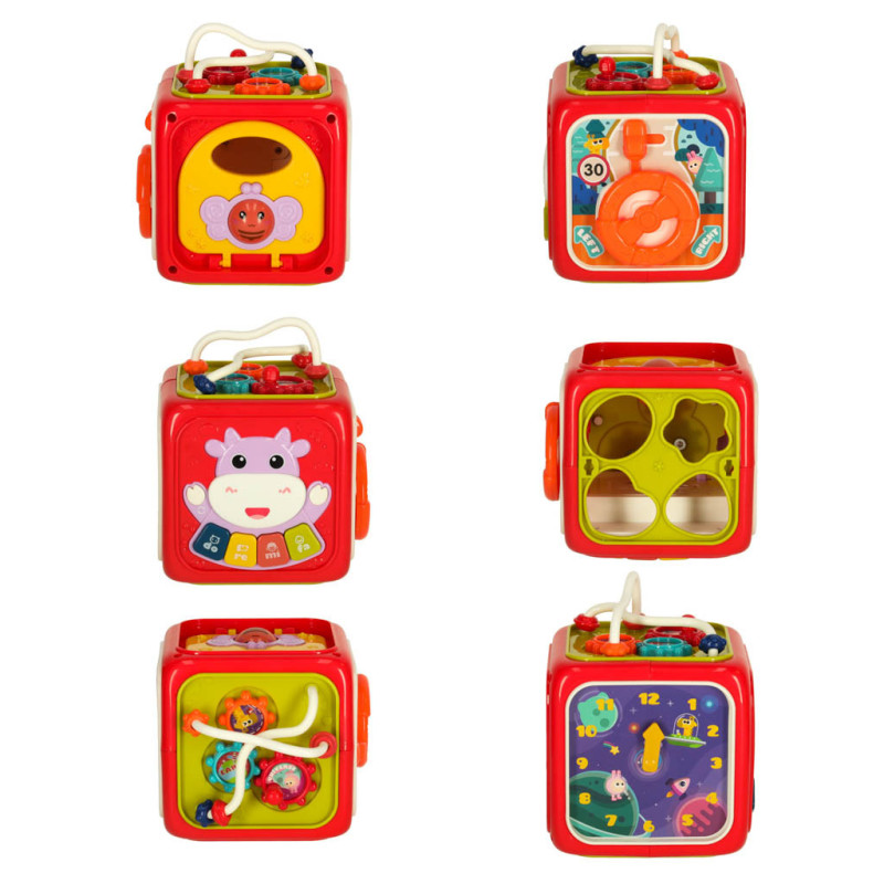 Senzorická hračka vzdelávacia kocka 6v1. Vek: od 18m+