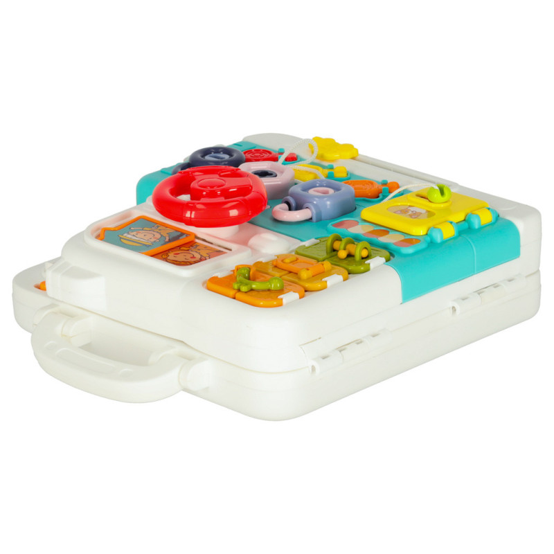 Manipulačná tabuľa v kufríku je ideálnou hračkou pre každé zvedavé dieťa. Kombinuje učenie, objavovanie a zábavu v jednej praktickej a ľahko prenosnej forme. Navrhnutá pre deti od 18 mesiacov, ponúka množstvo interaktívnych prvkov na otváranie, otáčanie, posúvanie a skúmanie – všetko bezpečne ukryté v kompaktnom kufríku vhodnom na doma aj na cesty.