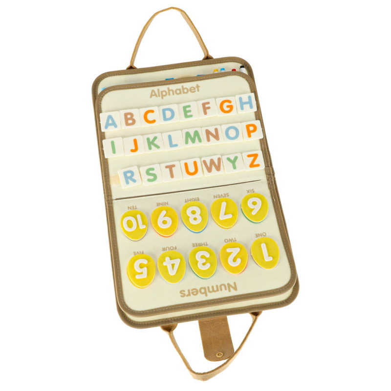 Tabuľa obsahuje farebné filcové prvky, čísla, písmená a dinosaury, ktoré motivujú dieťa objavovať a učiť sa. Deti si osvoja písanie, počítanie, rozpoznávanie tvarov a farieb, a dokonca aj prvé anglické slovíčka vďaka tematickému obsahu.