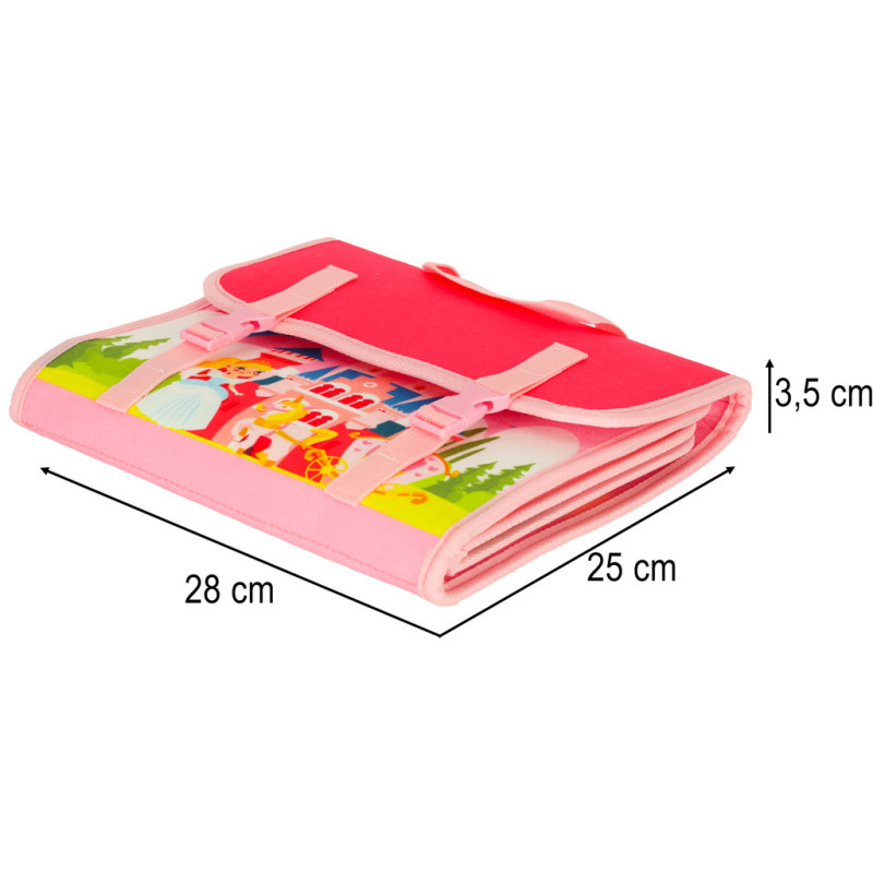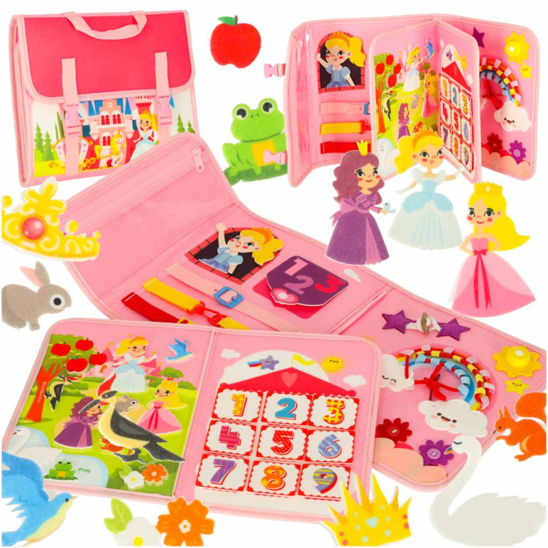 Ružová manipulačná tabuľa Montessori s motívom princezien rozvíja zručnosti detí a zároveň ich vťahuje do sveta fantázie. Je ideálnou voľbou ako darček pre malé princezné – či už na narodeniny, Vianoce alebo ako pomôcka na cestovanie.
