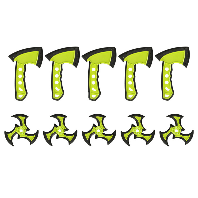 V sade sa nachádza 5 plastových sekier a 5 shurikenov, ktoré majú zakončenie zo silikónu a nemajú ostré hrany.