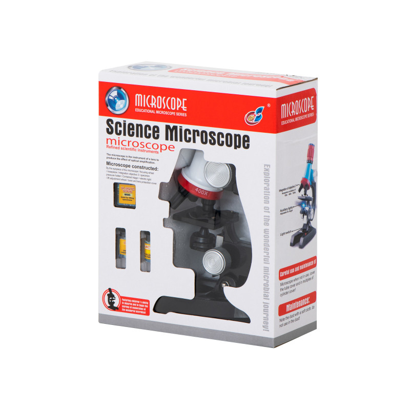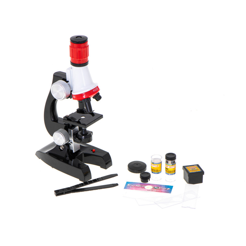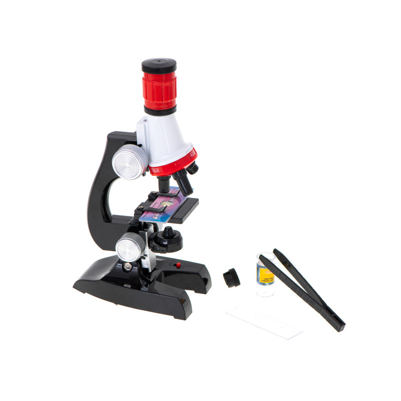 Mikroskop je vybavený optickým zväčšovacím objektívom, ktorý umožňuje vidieť to, čo je voľným okom často neviditeľné. Vďaka otočnej hlavici má mikroskop tri typy zväčšenia, 100x/400x/1200x,